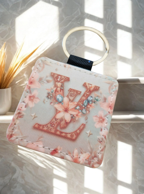 Hier finden Sie einen perfekten Schlüsselanhänger aus Stoff , der auf der Rückseite Glitzert. Er ist ca. 5 cm x 5 cm groß.